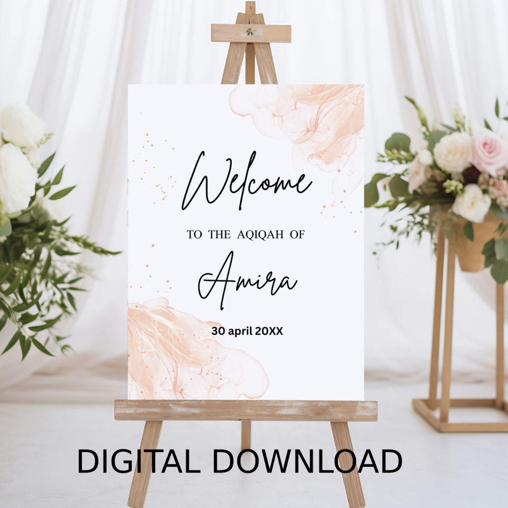 Aqiqah Printable Welcome Sign PDF – Personalized Islamic Baby Shower Decor