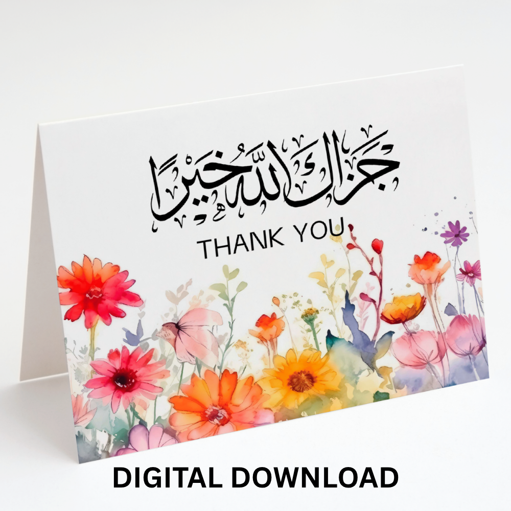 Celebrate your loved ones in a special way with this beautifully designed arabic thank you card JAZAKALLAHO KHAYRAN!