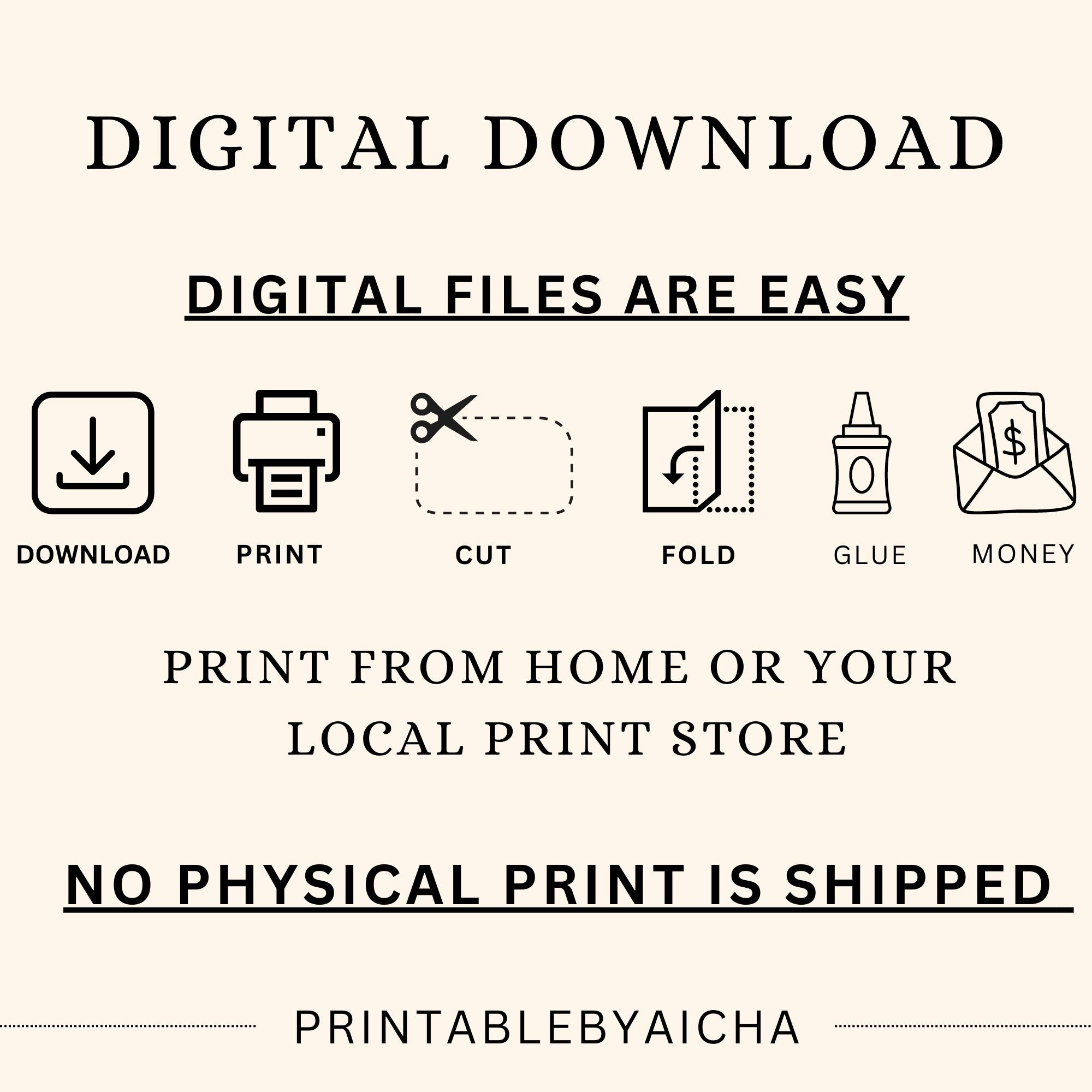 Printable cards offer simplicity and convenience; you simply print from home or a store and cut it out.