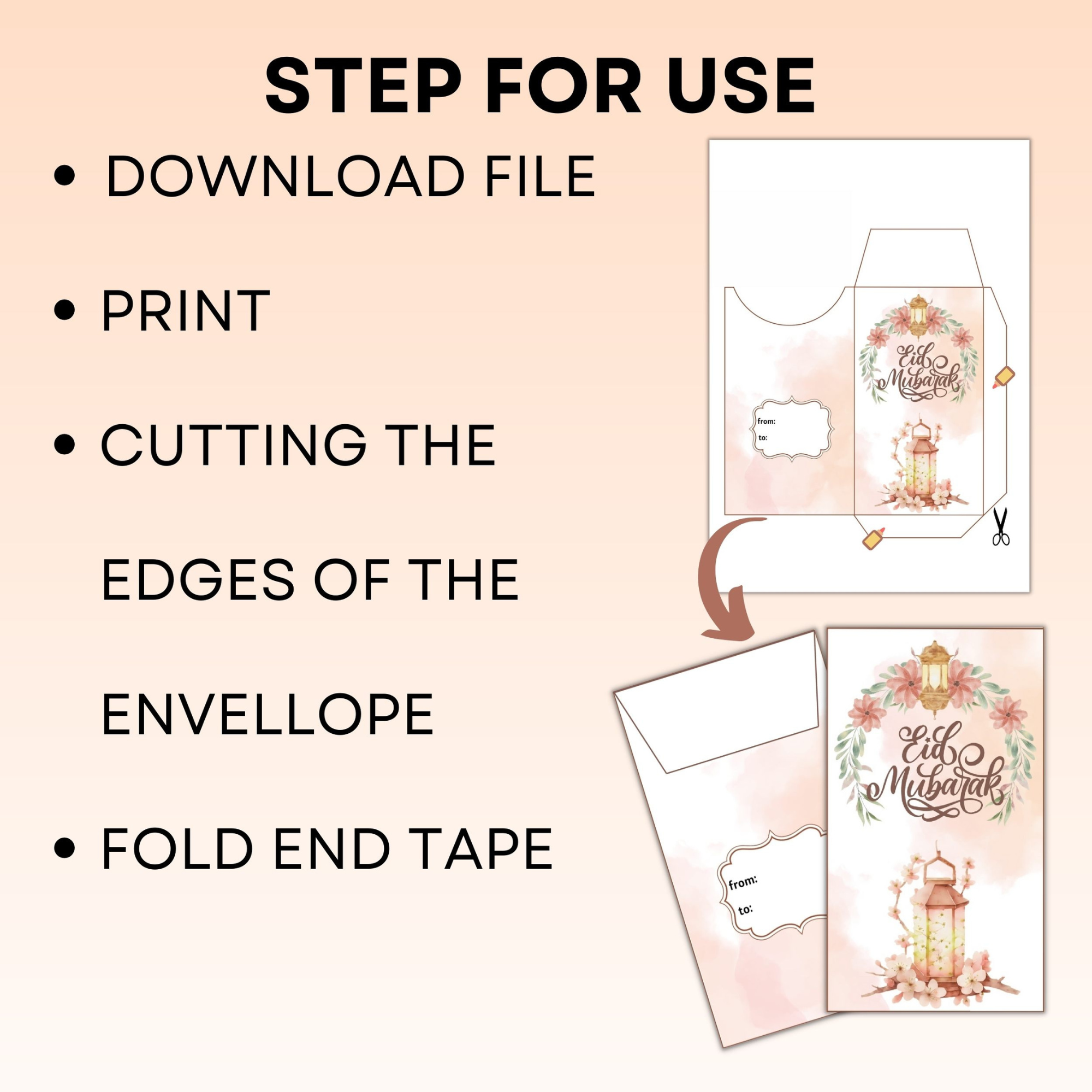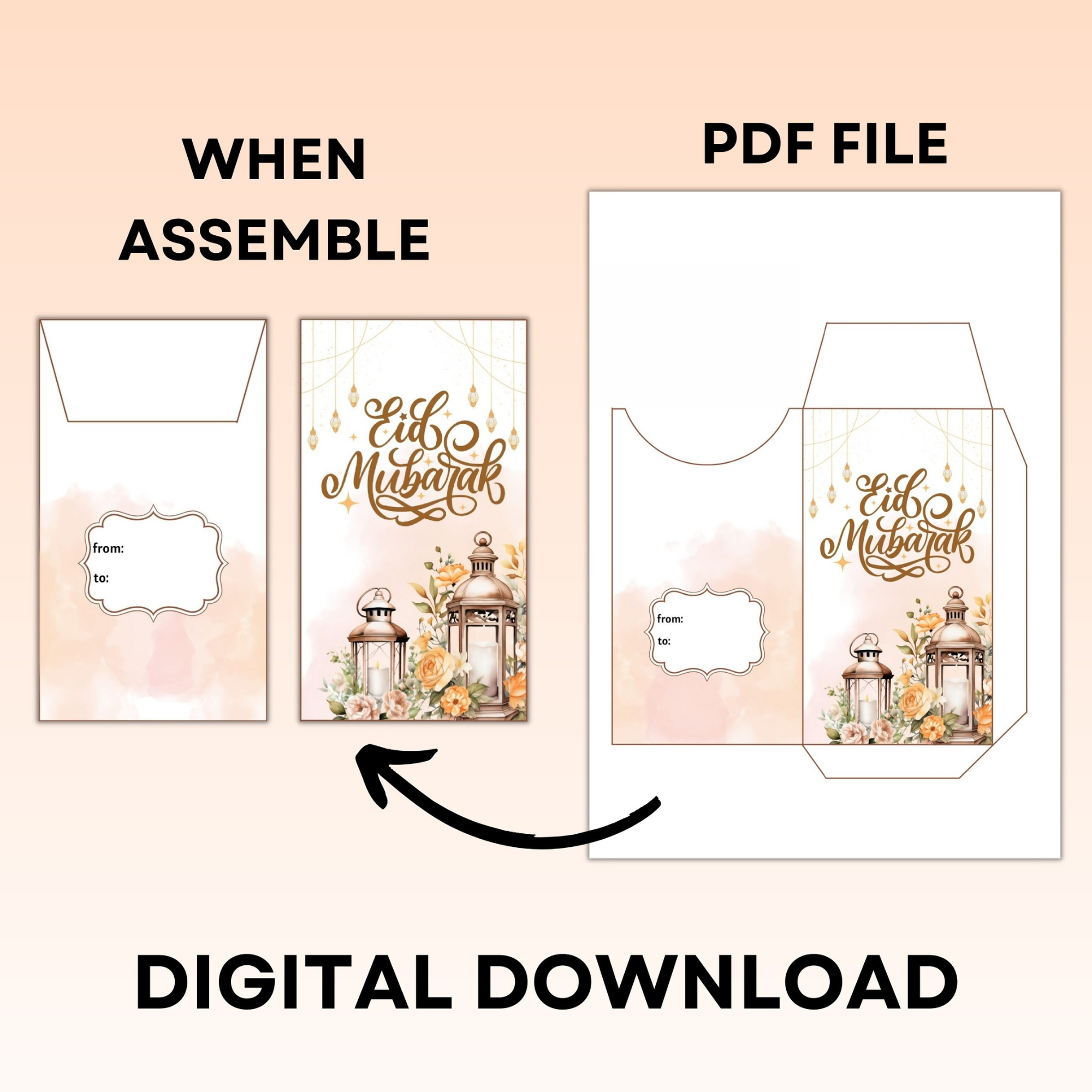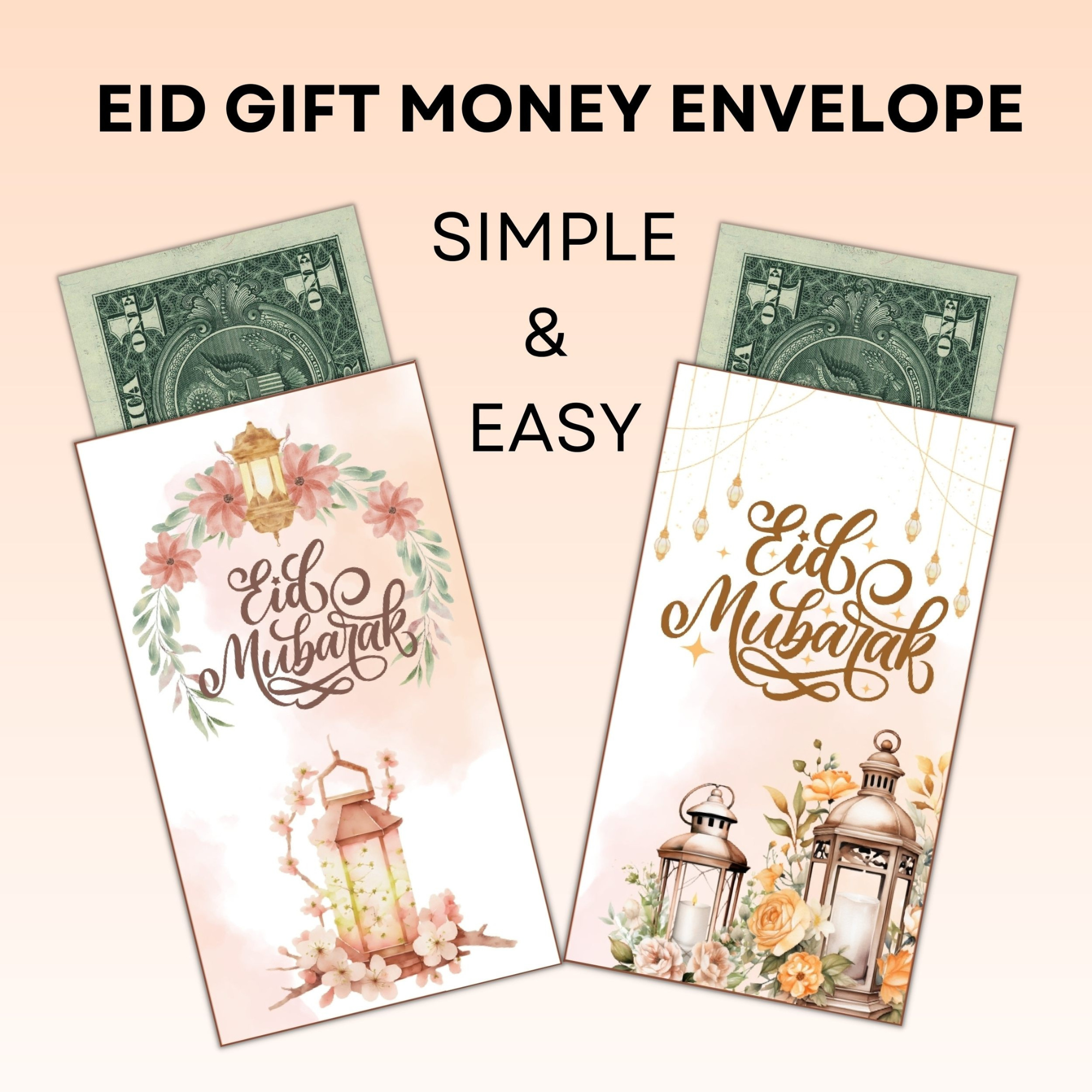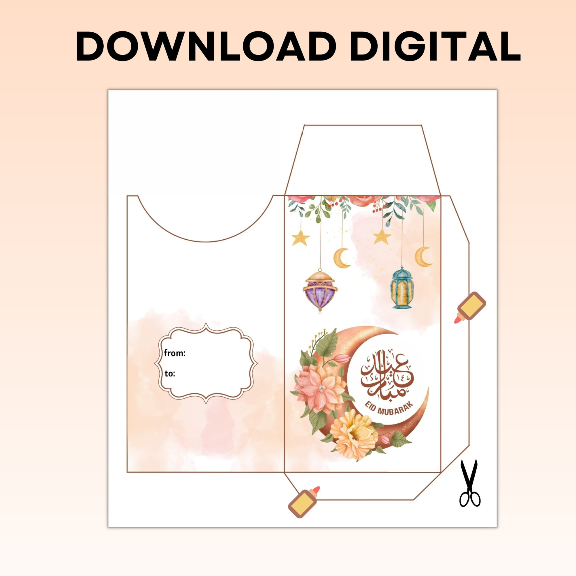 Eid money envelopes pdf file come in a pack of 6 , making it easy and convenient to secure gift money during Eid celebrations.
