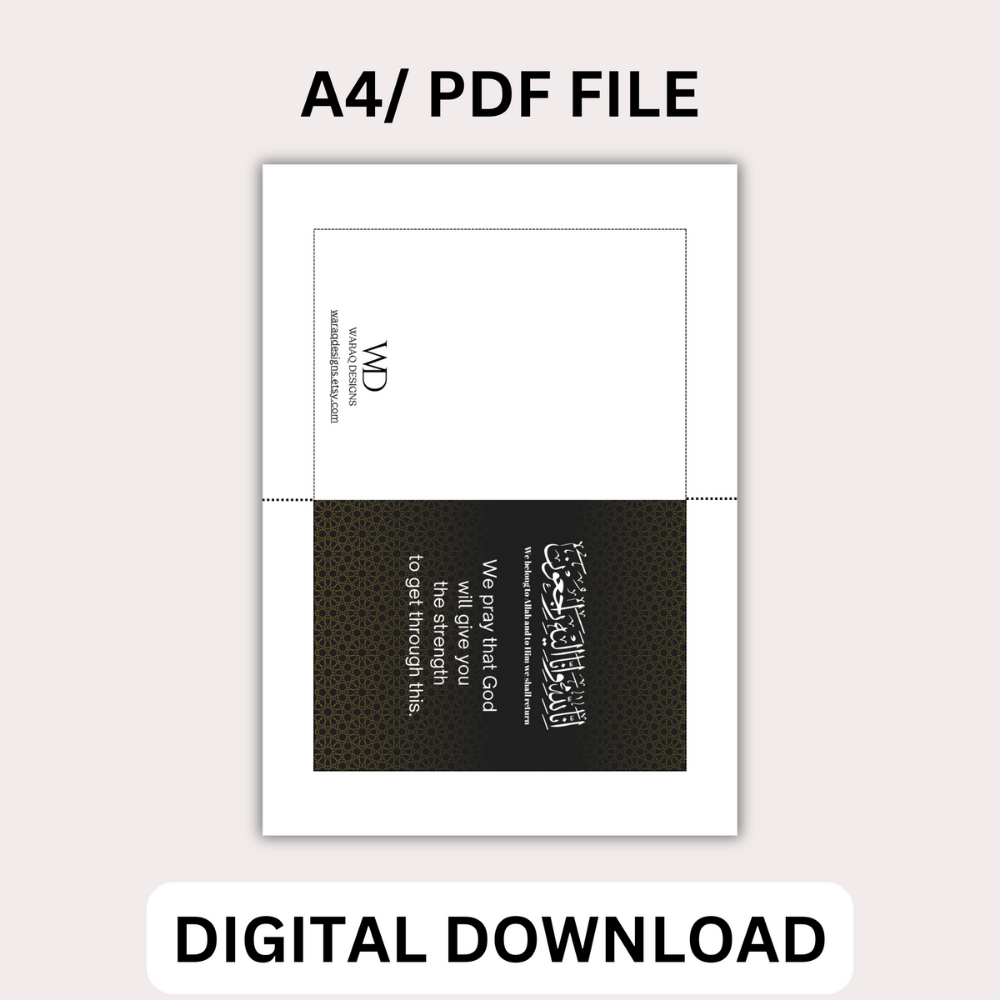 This Islamic sympathy card offers heartfelt condolences through the light of faith. Designed to bring solace in times of loss, it gently reminds loved ones of Allah’s mercy, qadr (divine will), and the promise of reunion in Jannah.