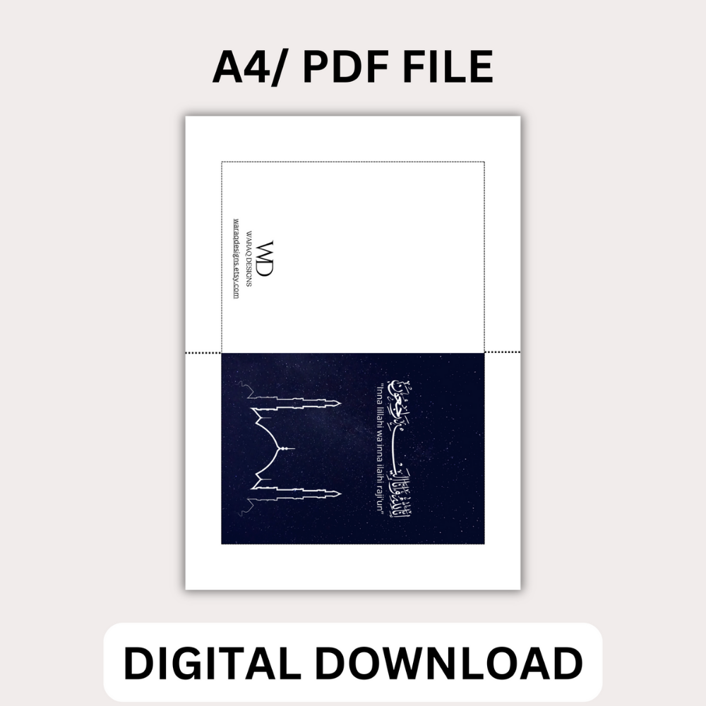 This Islamic sympathy card offers heartfelt condolences through the light of faith. Designed to bring solace in times of loss, it gently reminds loved ones of Allah’s mercy, qadr (divine will), and the promise of reunion in Jannah.
